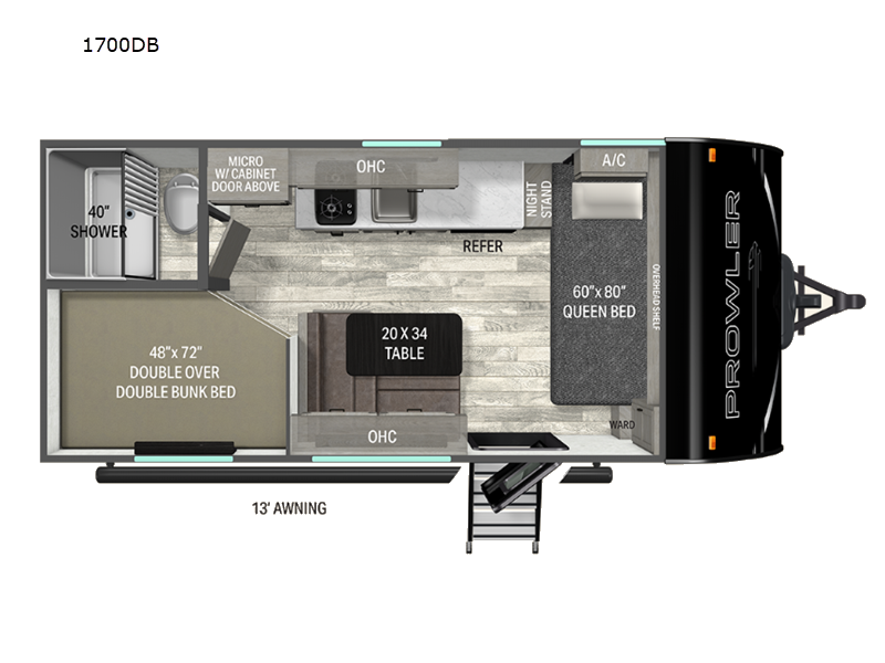 Heartland Prowler travel trailer 1702DBS Lynx Edition highlights: Queen Bed ... more about Prowler 1702DBS