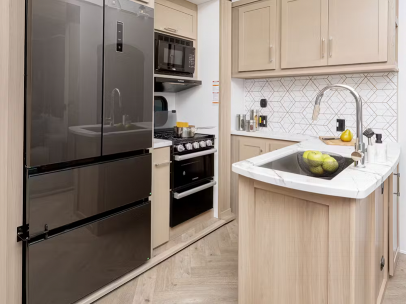 - Soft-close hardwood cabinetry w/ hidden hinges, 100 lb full extension ball-bearing drawer glides