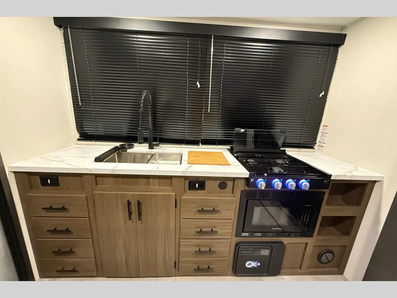 Sleeps 3 Furnace BTU 30000 btu Available Beds King Refrigerator Type 12V Cooktop Burners 3 Number of Awnings 1 Water Heater Type Tankless AC BTU 15000 btu Awning Info Power Awning w/LED Lights Axle Count 2 Shower Type Standard Similar Floorplans