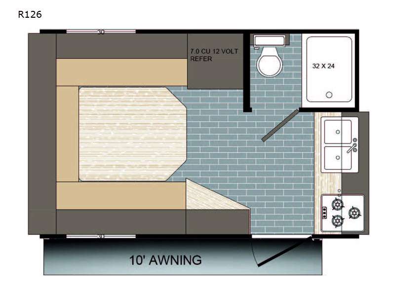 Sleeps 2 Length 16 ft Ext Width 7 ft 6 in Ext Height 9 ft 10 in Int Height 6 ft 7 in Dry Weight 2480 lbs Fresh Water Capacity 35 gals Grey Water Capacity 30 gals Black Water Capacity 30 gals Refrigerator Type 12V Refrigerator Size 7 cu ft Cooktop Burners 3 Shower Size 32" x 24" Number of Awnings 1 Water Heater Capacity 6 gal Water Heater Type DSI Gas Awning Info 10' Axle Count 1 Shower Type Standard Solar Wattage 100 watts Similar Floorplans